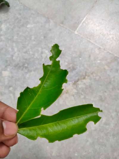 Citrus tree's leaves have lost shape and cuts are visible