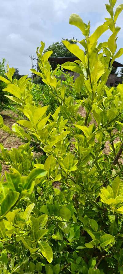 Hi Karan Patel. Your citrus plant is showing multiple symptoms like Nitrogen Deficiency , Iron Deficiency , Citrus Leaf Miner and Citrus Thrips . Click on green links for checking symptoms and taking control measures from Plantix library. Also need to apply good amount of Farm Yard manure or Vermicompost once in 6 months along with recommended dosage of fertilizers. Or you can also use fertilizer calculater available here on home page of Plantix to get good growth of your plant please.