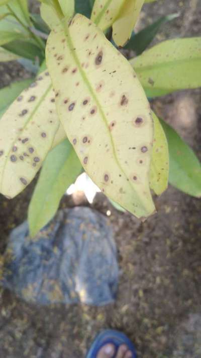 Hi Jokesh Sharma looks like fungal leaf spot. You may spray 1% Bordeaux mixture twice at 15 days interval.