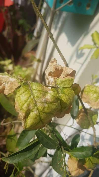 Heavily infested with Spider Mites attack. Remove the infested leaves and spray Acaricides.
