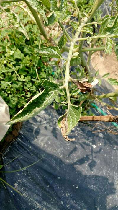 धर्मेंद्र जी यह सफेद मक्खी Silverleaf Whitefly और Tomato Late Blight का प्रभाव है। नियंत्रण हेतू असेटामप्राईड + करझेट का छिडकाव किजीए। धन्यवाद