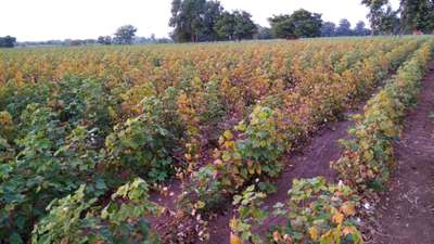 It isn't the Mg deficiency as the reddnijg is confined to specific regions. It is Bacterial Blight of Cotton caused by xanthomonas
