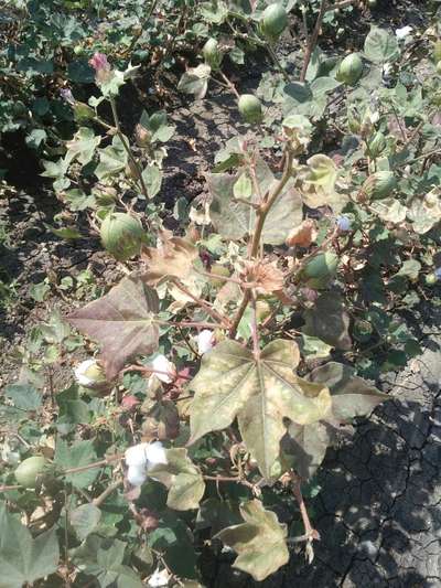 Most of the cotton bolls colour changed and damaged