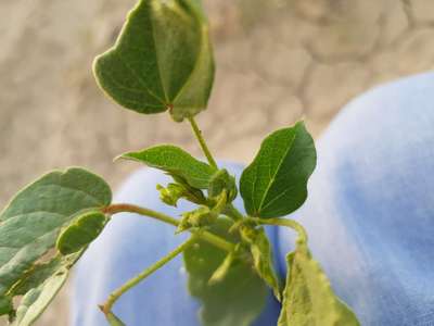 Upper leaves of cotton show discoloration