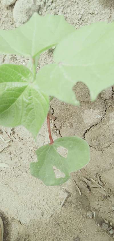 Hi Naru Parmar . Your cotton crop is effected by leaf eating beetles. Let's spray Neem oil to control these insects.