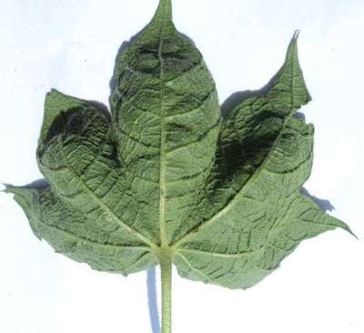 Leaf become bowl and it effect the growth of cotton plant.