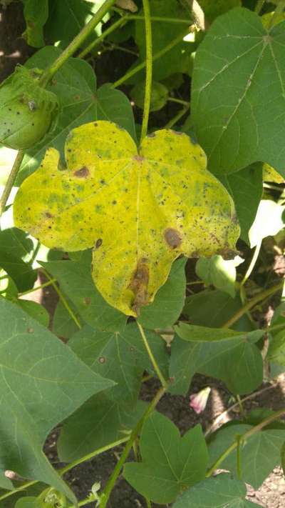 మాది నల్లరేగడి భూమి, పత్తి వేసి 90 రోజులు కాయ పై మచ్చలు', పత్తి పువ్వు లో పురుగు, పత్తి ముదురు ఆకులపై గోధుమ రంగు మచ్చలు కొంచెం అగ్గితెగులు లాగా ఉంది, కాయ మరియు పూత రాలిపోతుంది. దూరం నుంచి కనిపించటానికి పొలం బాగుంది. నివారణ మార్గం తెలుపగలరు