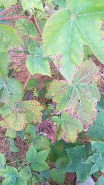 Rajeshkemidi I think it is due to Cotton Leafhopper Jassids . Please check the above link for detailed symptoms and remedies.