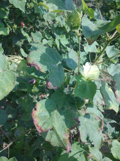 This three months cotton planting there is red spots and edge also getting red of leave so what can I spray on this.
