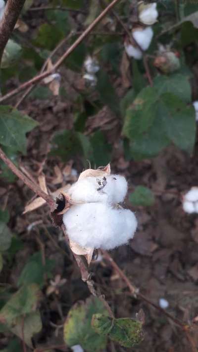 Dear Deepak Paliwal It is Dusky cotton bug. The adults and nymphs suck the sap from the half opened bolls , thereby staining lint. Spray Quinolphos 2 ml in one litre of water. About 300 litres of spray solution may be required per acre. Good luck.