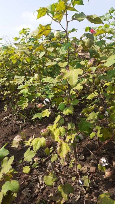 Growth stunted Brown spot on boll Some boll become black and brown in colour