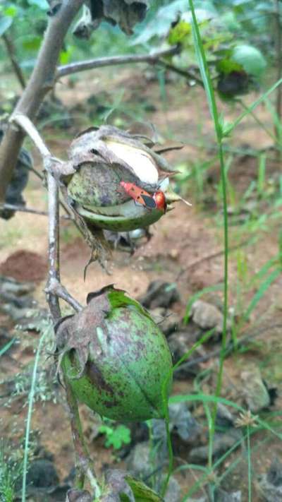 Durai M The foliar application of formulations containing chlorpyrifos, quinolphos or indoxacarb has shown to reduce red cotton bug population.