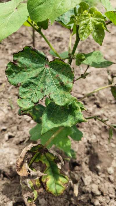 Hi Ravireddy . Your cotton crop is severely effected by Cotton Leafhopper Jassids and Anthracnose of Cotton . Click on green links for checking symptoms and taking control measures from Plantix library. You can also create a "Cultivation Tips" for cotton in Plantix. It provides you information on how to optimize your crop production.