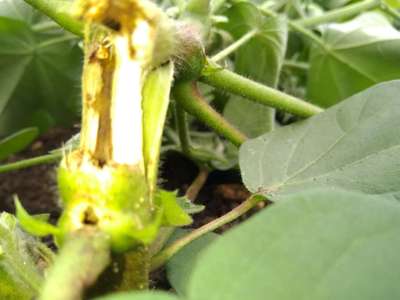 Plants are falling down.. and fallen planta have tonnel like structure n larvae also present in that tonnel... Even excreta found on stem of plant