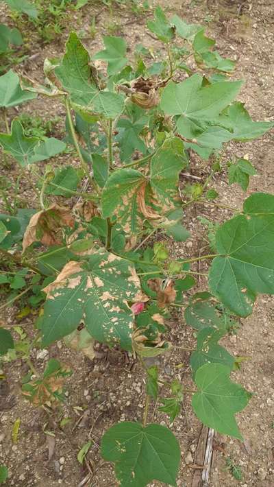 Hi Ogappa Koneri. It looks like Wet Weather Blight of Cotton . Click on green link for checking symptoms and taking control measures from Plantix library.