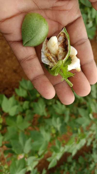 Plz suggestion above pics Cotton flower dropping and గులాబీ రంగు పురుగు and froot damage