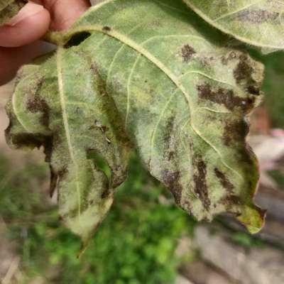 మాది నల్లరేగడి భూమి, పత్తి వేసి 90 రోజులు కాయ పై మచ్చలు', పత్తి పువ్వు లో పురుగు, పత్తి ముదురు ఆకులపై గోధుమ రంగు మచ్చలు కొంచెం అగ్గితెగులు లాగా ఉంది, కాయ మరియు పూత రాలిపోతుంది. దూరం నుంచి కనిపించటానికి పొలం బాగుంది. నివారణ మార్గం తెలుపగలరు