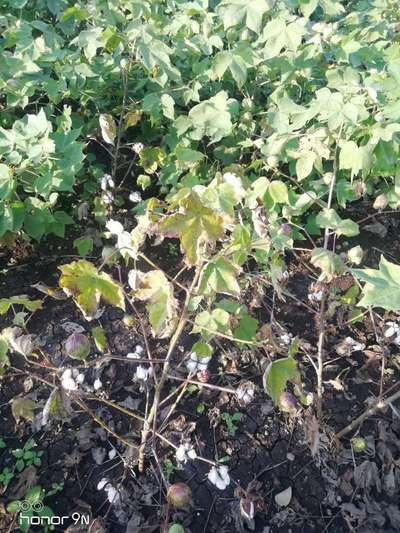 Some kind of disease growing from bottom to top leading to falling and wilting of leaves and only stem remains. Regardless of the age of boll they r opening up. This is in patches in my farm as well as all the farm around 5km area.