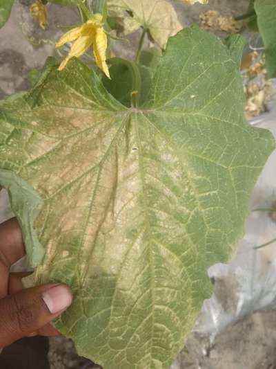 Sir plz suggest this problem , crop 2 month old, upper leaf green but old leaf this problem.