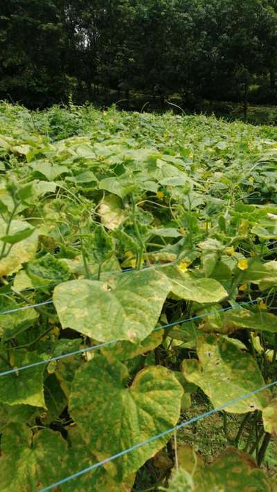 Sibaprasad Majumdar It might be due to Downy Mildew of Cucurbits . Spray with curzate for quick control.
