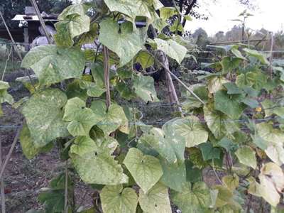 Hi Ravindra Singh . It seems to be like Iron Deficiency and Leaf Miner Flies . Click on green links for checking symptoms and taking control measures from Plantix library. Also use "fertilizer calculater", "Crop Advisory" and "Upcoming tasks" sections available here on Plantix home page, to optimize your rop production.