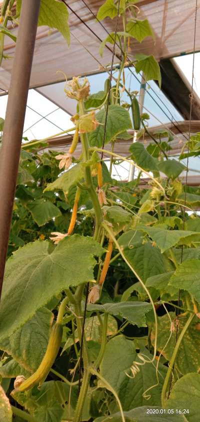 Wasim CUCUMBER FLOWER DROP IN CONTROLLED CULTIVATION REASONS 1 Much difference between day & night temperatures 2 Cloudy environment 3 High temperature 4 High Humidity 5 High transpiration rate 6 Boron deficiency 7 Low phosphorus level 8 Water scarcity 9 Sucking pests especially thrips attack REMEDY 1 Use silicon to suppress environmental stress 2 Install foggers on western side (outer side) & mist spray should be on insect net 3 Give 400 gm Boran per acre at weekly interval 4 In calcareous soils dissolve Boran in Luke warm water & than supply through drip 5 Give Phosphorus (12:61:00 or 13:40:13 or 00:52:34) at 4 days interval in flowering stage 6 In winter give irrigation in early morning hours. 7 Spray 10 PPM NAA in severe cases 8 Use silicon base sticker & spreader like silwet in every spray 9 For controlling thrips use Fipronil, Lambda Cylohythrin or Thiomethoxim or Spinosad 10 Install cooling fans in summers 11 Avoid over watering in Rainy & winter as Fusarium wilt is the major threat in these seasons.