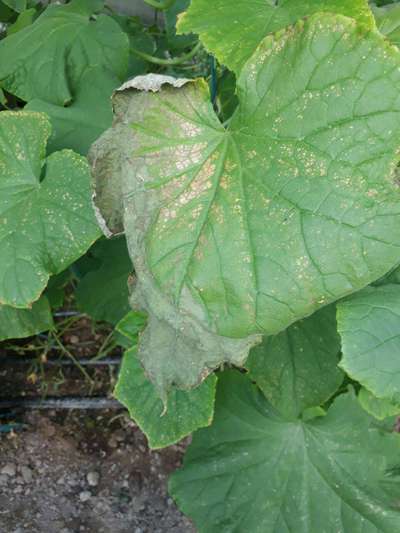 Hi Hamidreza. Compare symptoms with Thrips and Cucumber Scab by clicking on green links for taking control measures from Plantix library.