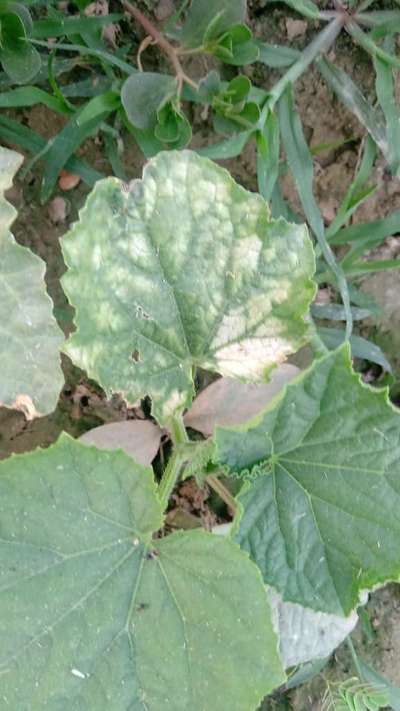 Hi Sonu . Please compare symptoms with Iron Deficiency and Downy Mildew of Cucurbits by clicking on green links for taking control measures from plantix library.