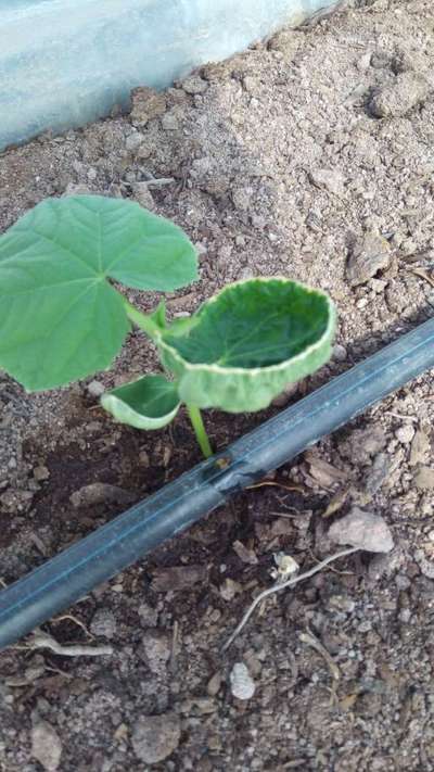 Hello lovely community, please what is wrong with my two weeks old cucumber plant?