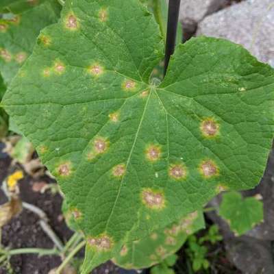 Learn more about PlantixRound spot with yellow on the outer part of the spot.inside the spot there is brown ring and the center of the spot is white.