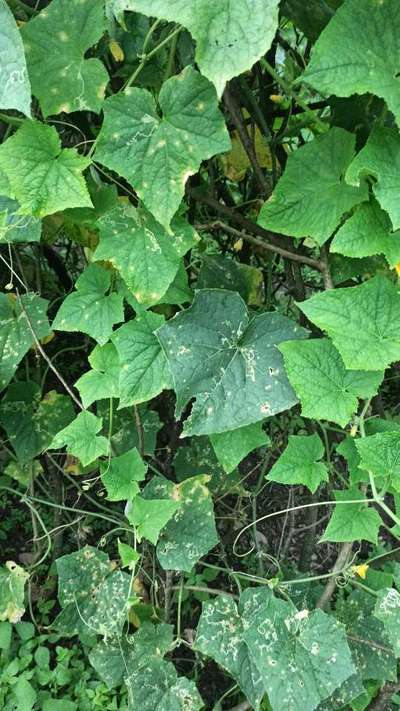 Hi Abhishek Sharma . As per your sent image - your cucumber crop is severely effected by Leaf Miner Flies , Thrips and Flea Beetles it seems. Lets check symptoms by clicking on green links for taking control measures from Plantix library.