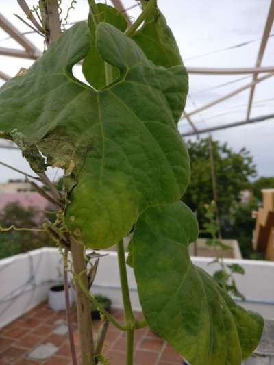 My snake gourd, ridge gourd and even bottle gourd leaves turn as brown and dry in some places alone . Some leaves became transparent in portions. What's the reason and remedy please?