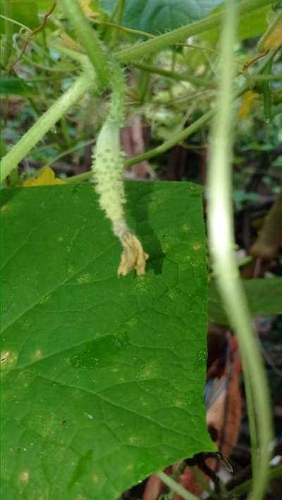 Learn more about PlantixSome yellow spots on the leaves, the cucumbers are turning yellow