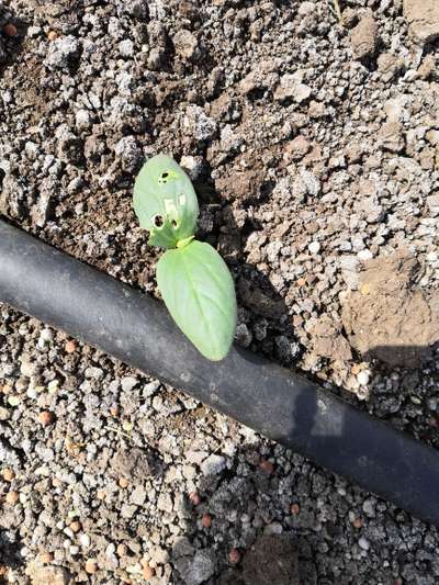Newer growth looks fine. Old leaves are yellowing, with dead parts turning brown. There were/are some heavily speckled white spots on the plant, which seemed to disappear when I sprayed with neem oil and safer caterpillar killer. I have noticed several leafhoppers on the plant, maybe 5-6. Lots of the tiny vines turned brown or yellow and died. Just to clarify, the dead leaves on the ground are ones I cut off. Most of them were dying anyways. Some of the cucumbers were astringent because it was around 92-95°F last week. The new cucumbers during that week would become brown and mushy, they all died. I'm not sure how else to describe the damage, so please refer to the pictures I attached. Thank you!!