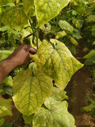 Hi Emmen Tube. Please compare severe symptoms with Iron Deficiency , Downy Mildew of Cucurbits and initial symptoms of Leaf Miner Flies by clicking on green links for taking control measures from Plantix library.