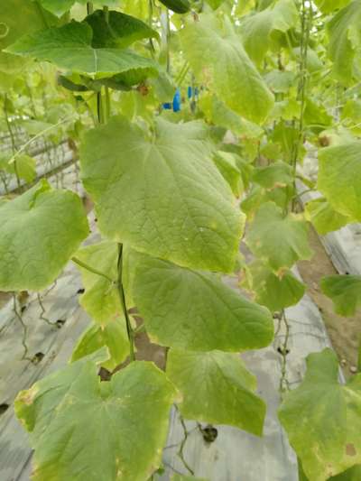 Poly house seedless cucumber leaves becomes light green