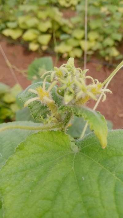 Hole in Cucumber and white thing out from Cucumber that why it's growth stop. In initial stage when small fruit a rubber material come out and stick on the fruit
