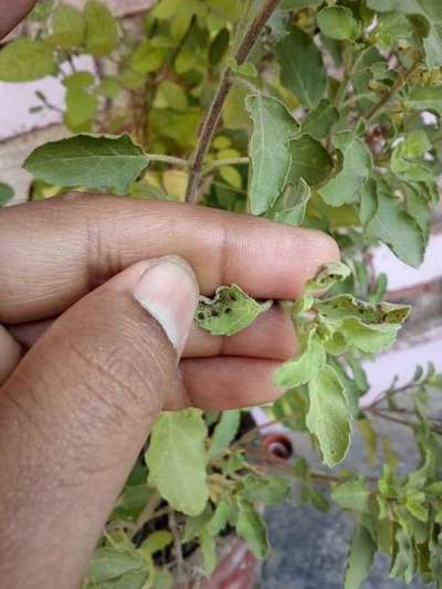 Black insects on basils leafs , which make the leafs , squeezed and make those dry .