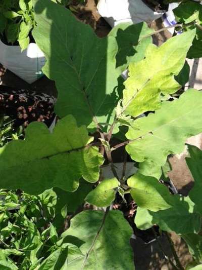 Hi Subichandu Uthaman . In some cases emerging leaves are in light green in colour and turn to dark as it's age progresses. I don't see any specific deficiency symptoms on your plant. Just you follow all good package of practices pertaining to eggplant to get good growth and yield. Thanks for visiting.