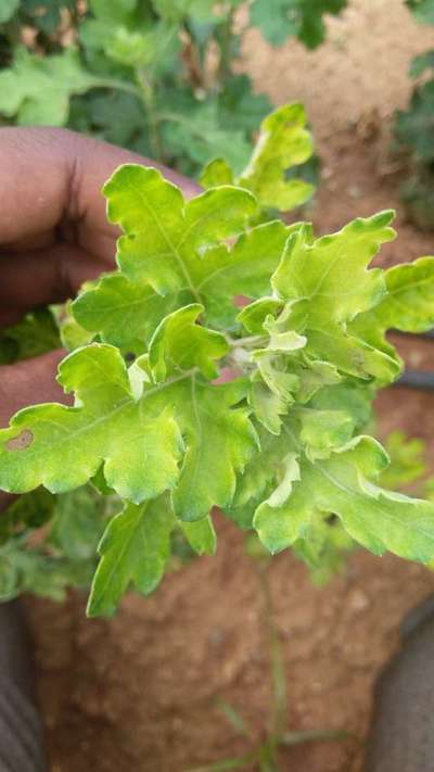 Hi Pradeep V Reddy . It might be Nitrogen Deficiency . Click on green link for checking symptoms and taking control measures.