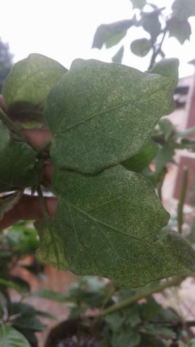 Whitening of eggplant leaves. Why is this happening to the leaves. Plz tell me the solution. Thank you.
