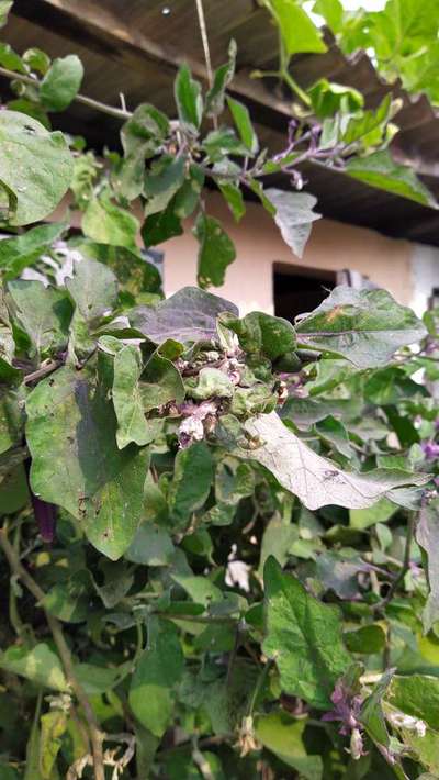 This egg plant new stems are affected by shrinking shooth with white colour in it.