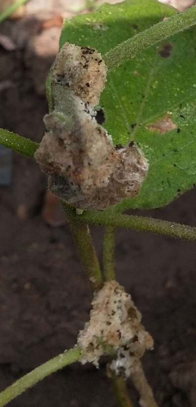 Learn more about PlantixWhite colour sponga like substance is forming on leafs.