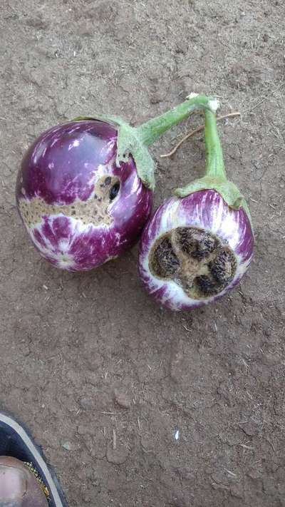 Hi David Dev. It's Thrips and check Brinjal Shoot and Fruit Borer by clicking on green links for taking control measures from Plantix library.