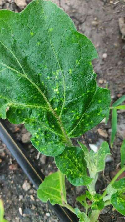 बैगन के पत्ते घुंघरैला हो रहा है। और बढ़ नहीं रहा ऐसा क्यों हो रहा है। please help करिये?