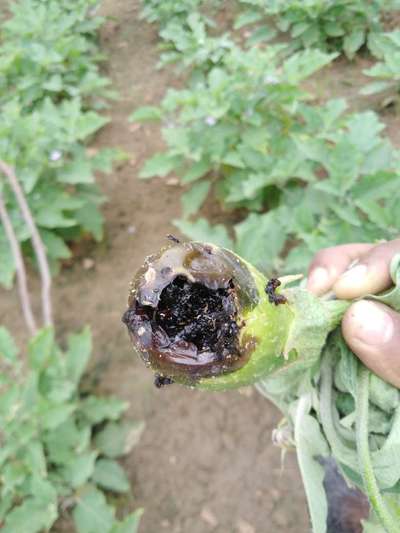 Crop is fed of with root and shoot borers and this kind of disease to the brinjal