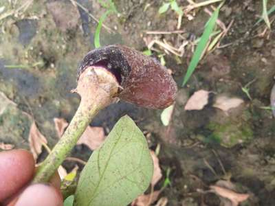 So we got this brinjal sapling a few days ago. It started drooping and one leaf even wilted and fell off. The underside has these black looking spots with some white looking stuff.