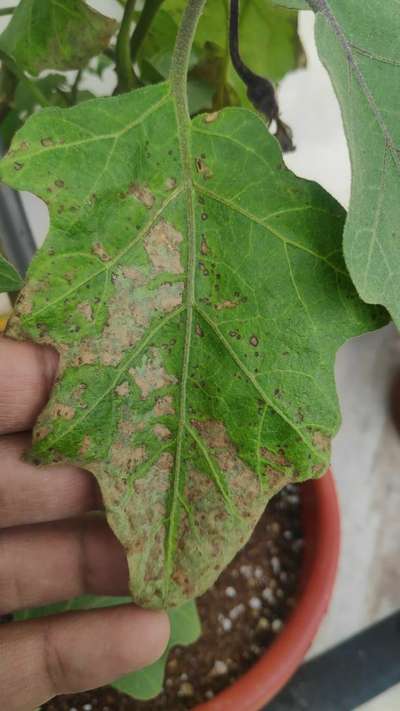 Leaves of the egg plant turning brown. Flowers fall and dried. Fruit growth is slow and falls.
