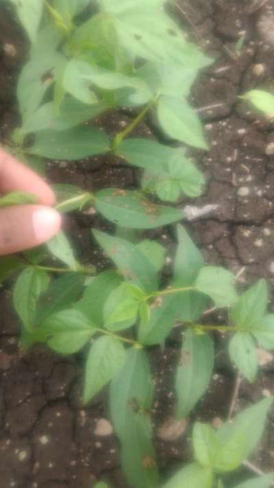 Hi Yogesh. It seems to be like Cercospora Leaf Spot of Legumes and Tobacco Caterpillar . Click on both green links for checking symptoms and taking control measures.