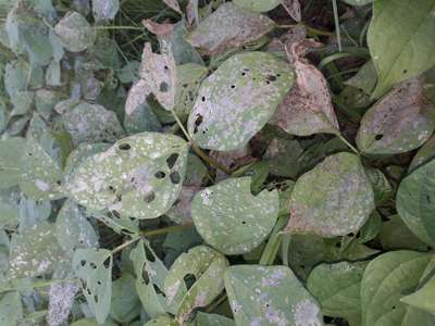 Hi Amiya Patra. This crop severely effected by Thrips , Tobacco Caterpillar and Soybean Looper . Check symptoms by clicking on green links given here for taking control measures from Plantix library. Also use fertilizer calculater, crop Advisory, see all tasks and weather report sections available here on home page of Plantix to increase your crop productivity.